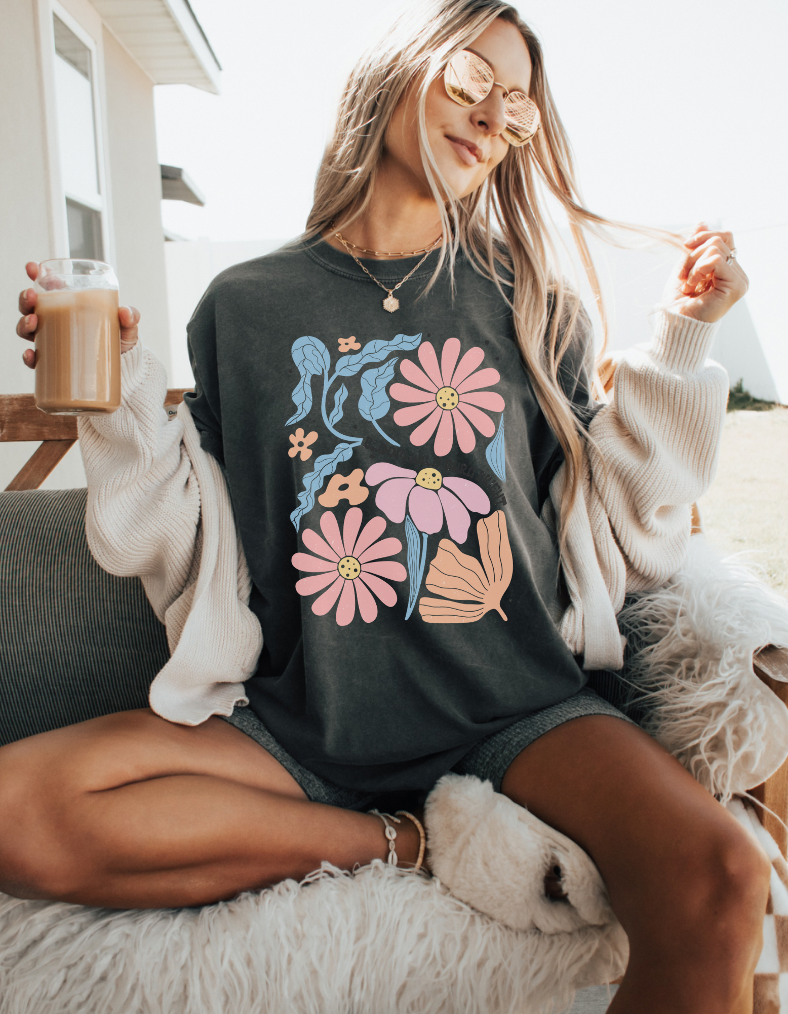 Size up 1-2 sizes for the oversized look